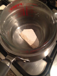As soon as the cocoa butter has melted turn the heat off and add the oil, and stir.