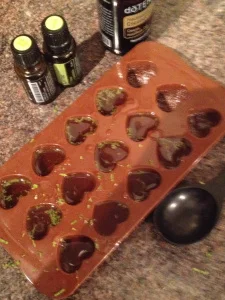 Add the essential oils then leave to cool just slightly before pouring into the ice cube mould.