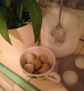 After decluttering my kitchen I found a piece of unrefined organic cocoa butter in the cupboard under the kitchen sink (as you do) and as it really needs using up decided to make a quick batch of lovely bath melts.
