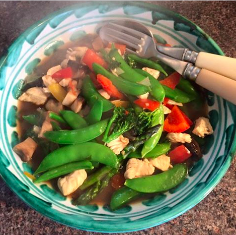 I make a little espresso which becomes an iced coffee blended with almond milk.