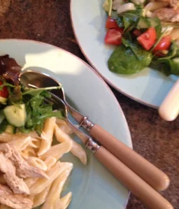 The original recipe for the pasta with lemon is from Mireille Guiliano's 'French Women Don't Get Fat' and while her recipe serves four, this has been modified and serves two.