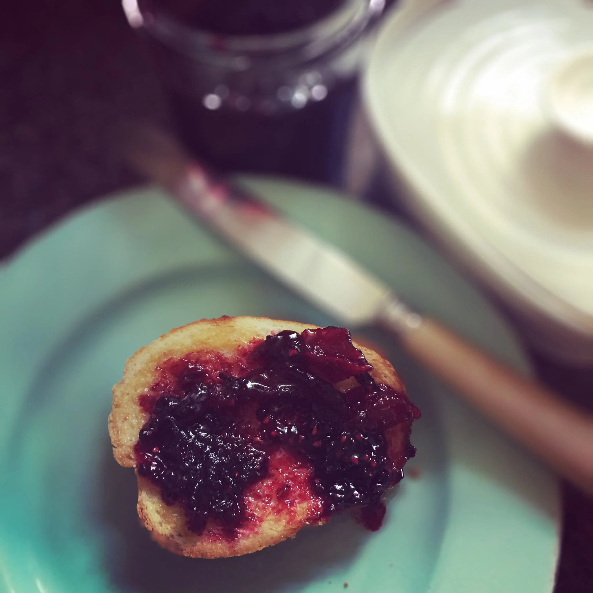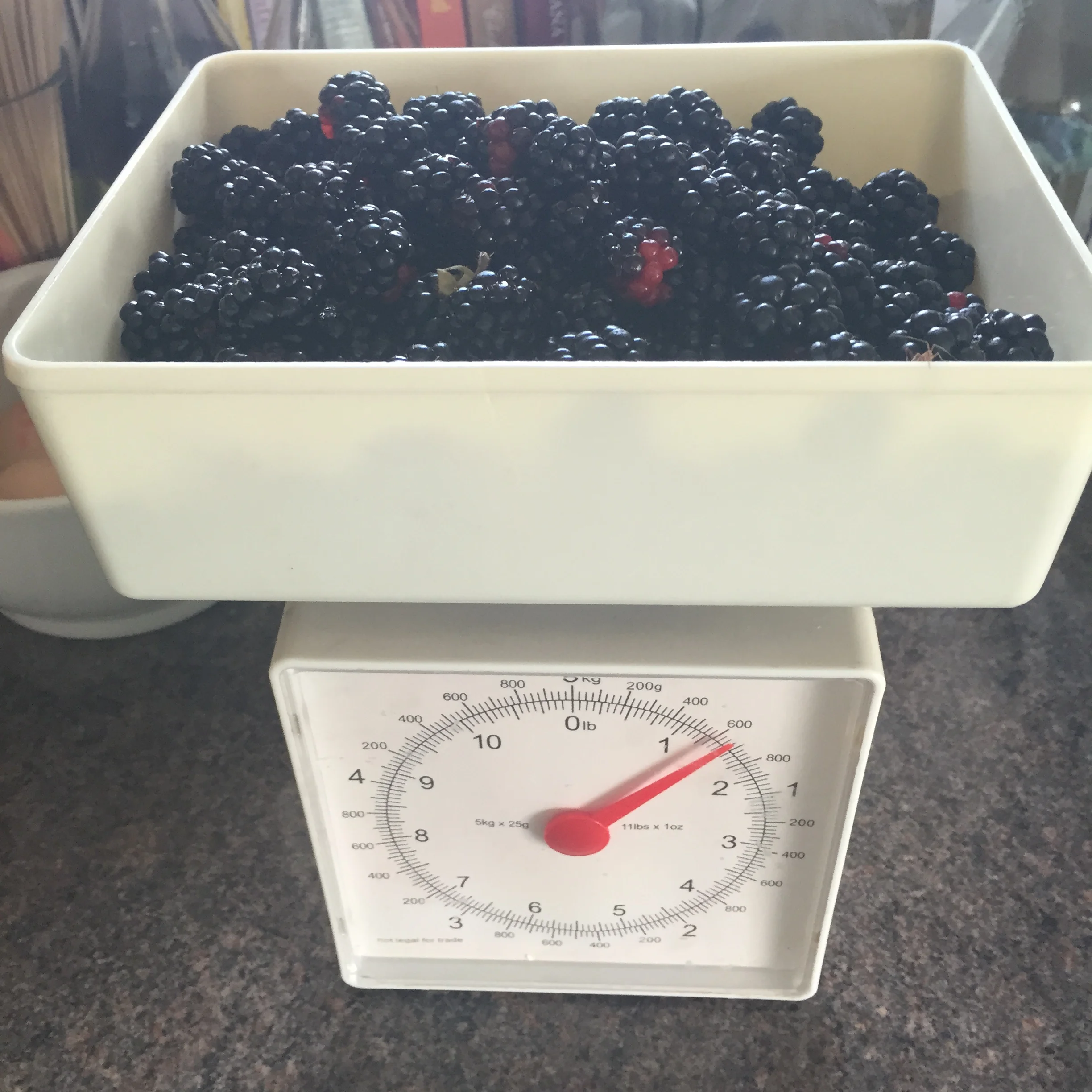 It was much too hot to even think about cooking yesterday - plus the sunshine and my roof were calling me back - so the blackberries oozed in the weighing scales overnight waiting for the rainy hours on Sunday before they were made into jam.