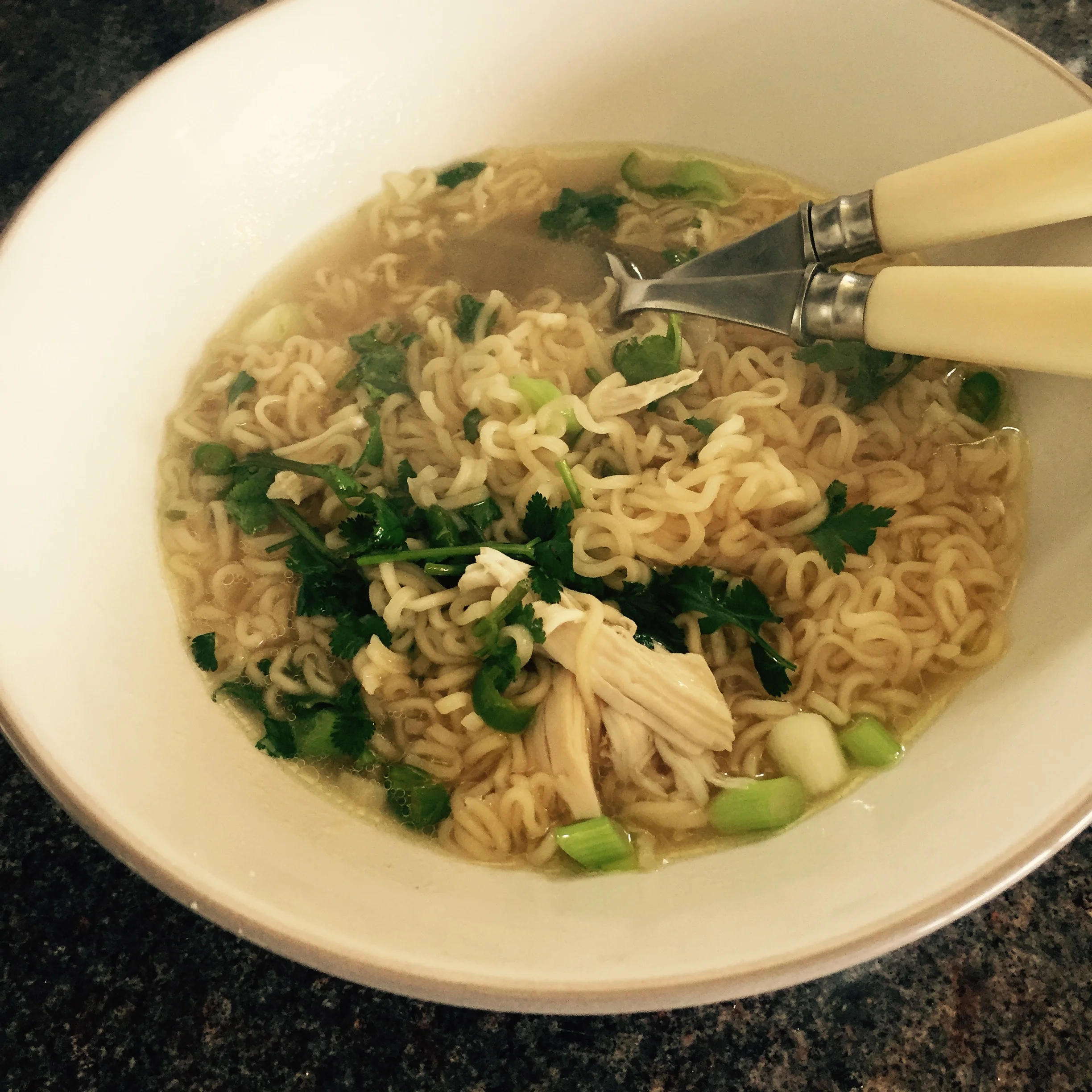 So, my one roast chicken made made five recipes (roast, noodles, curry, stock, soup) and seven meals.