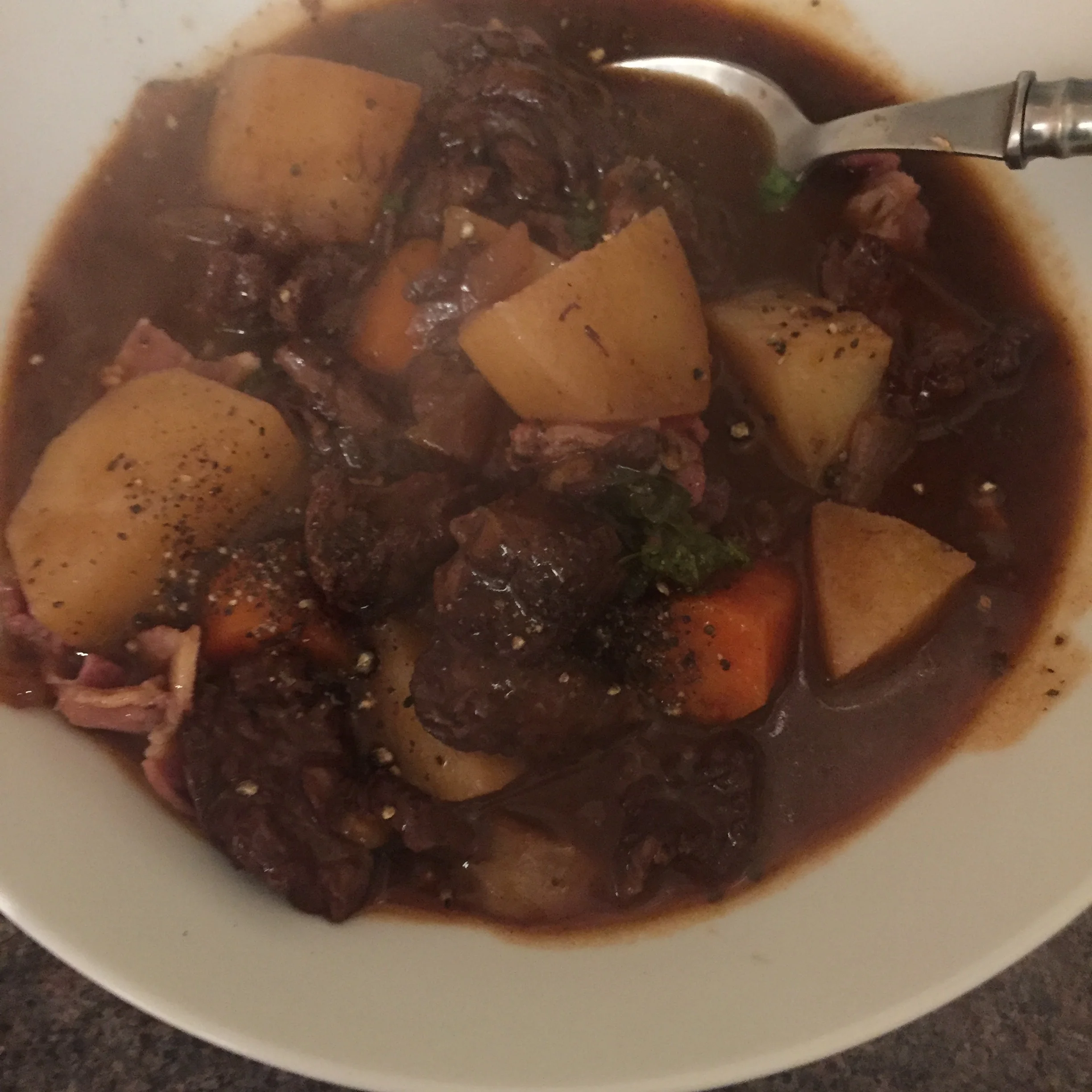 So, beef stew it was ... with a nod to the boeuf bourguignon with the late addition of sauteed mushrooms and bacon.