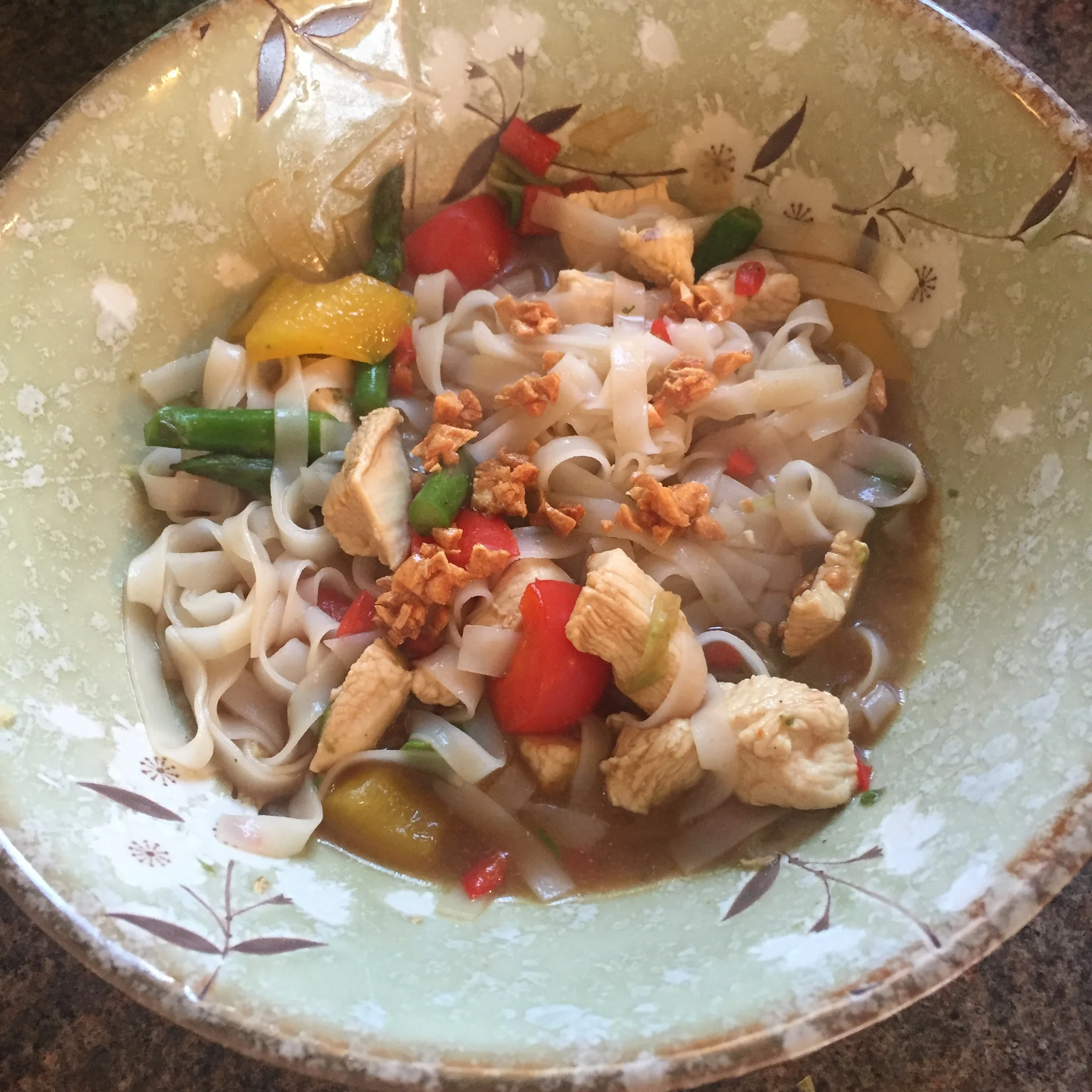 Having made some this morning, I'm adding crispy fried garlic to add some pizzazz to my simple chicken and noodle lunch.