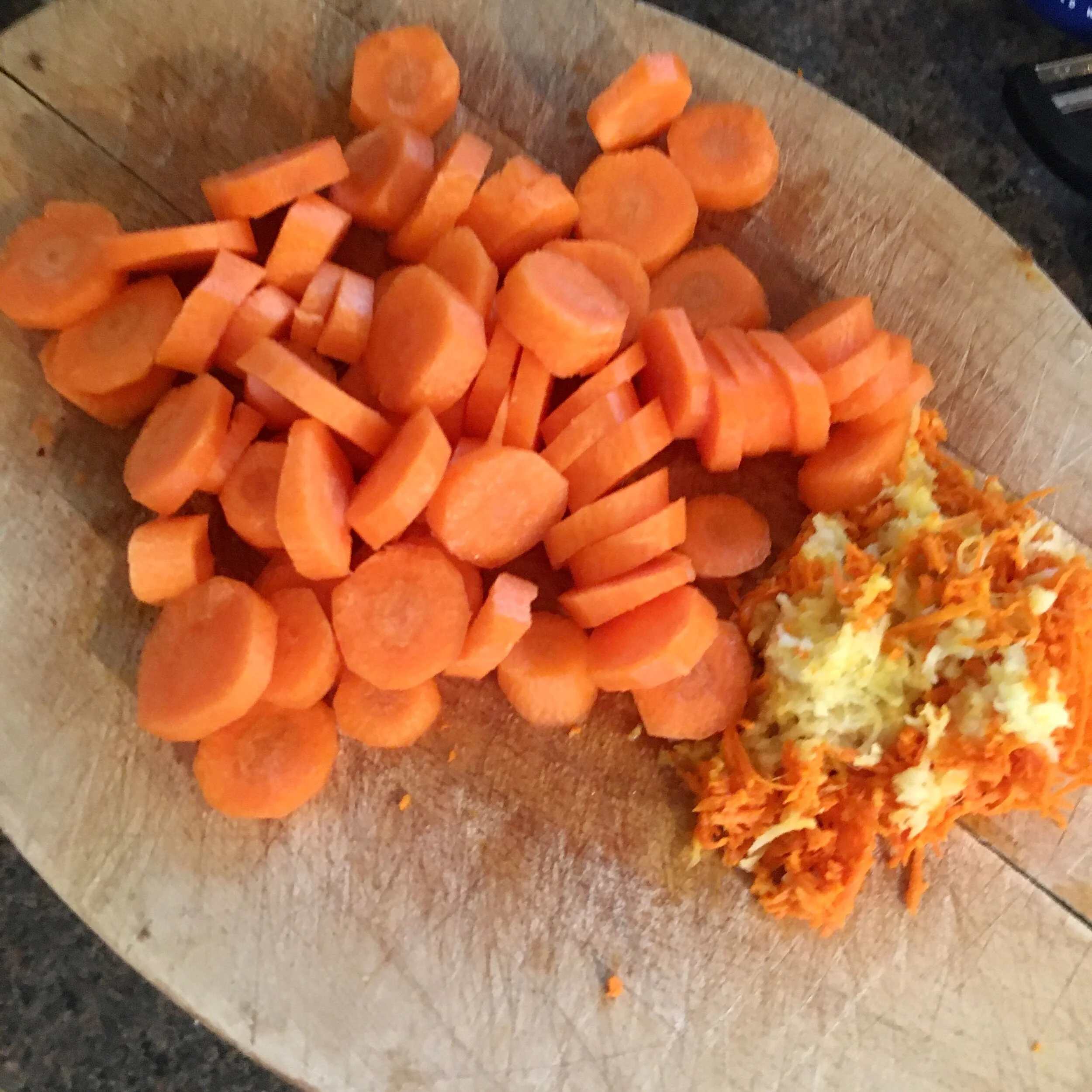 Lots of carrots - I had five good sized ones - peeled and sliced