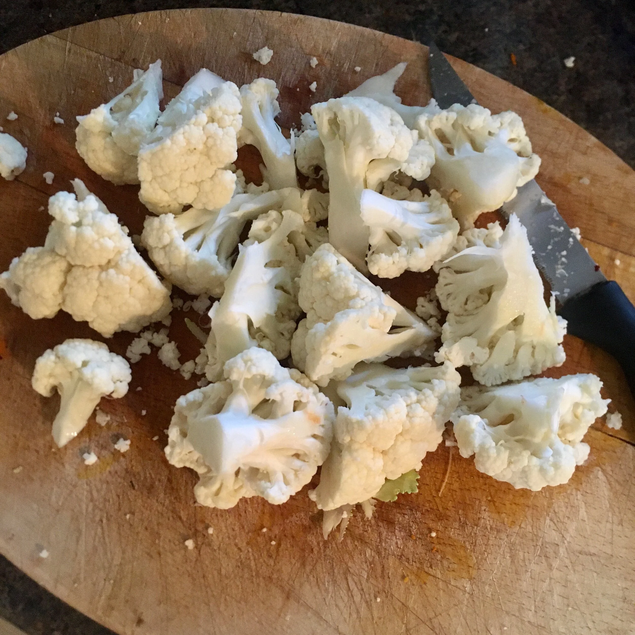 Simmer for ten minutes then add a small head of cauliflower cut into florets.