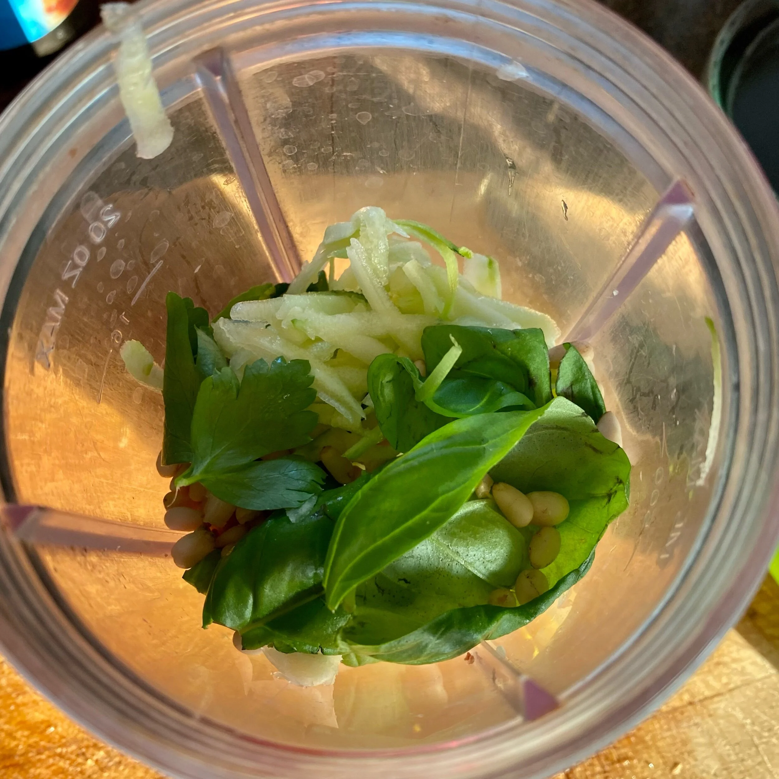 But the delicious courgette pesto is all raw so no unnecessary over-heating going on over here at all.