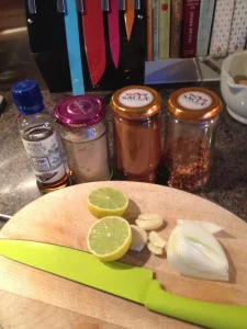 Again shop-bought or make your own as you choose. Plus a good squeeze of fresh lime.