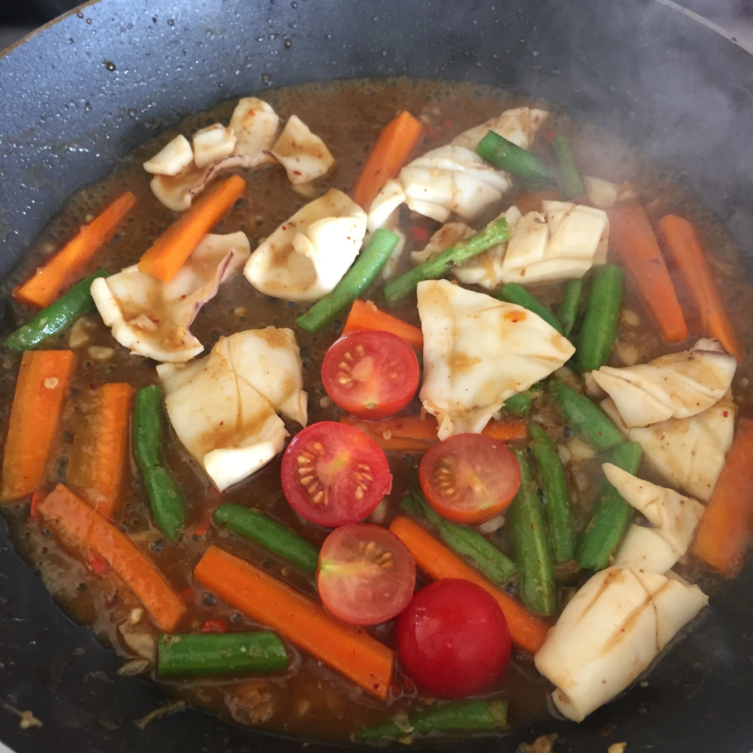 So ... time to rustle up the simplest seafood stir fry!