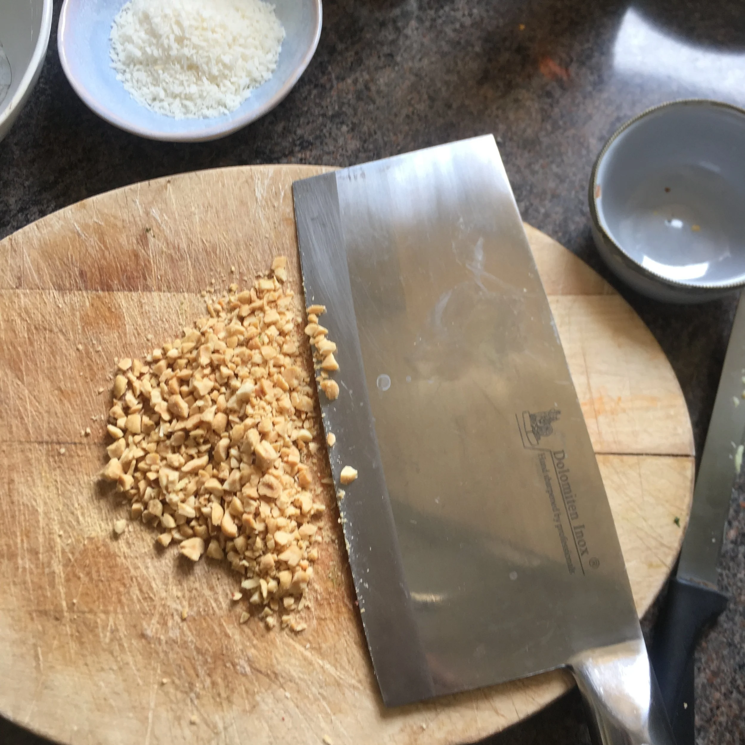 2 -3 dessert spoons of peanuts (I used salted ones as that was what was in the shop), chopped into small pieces