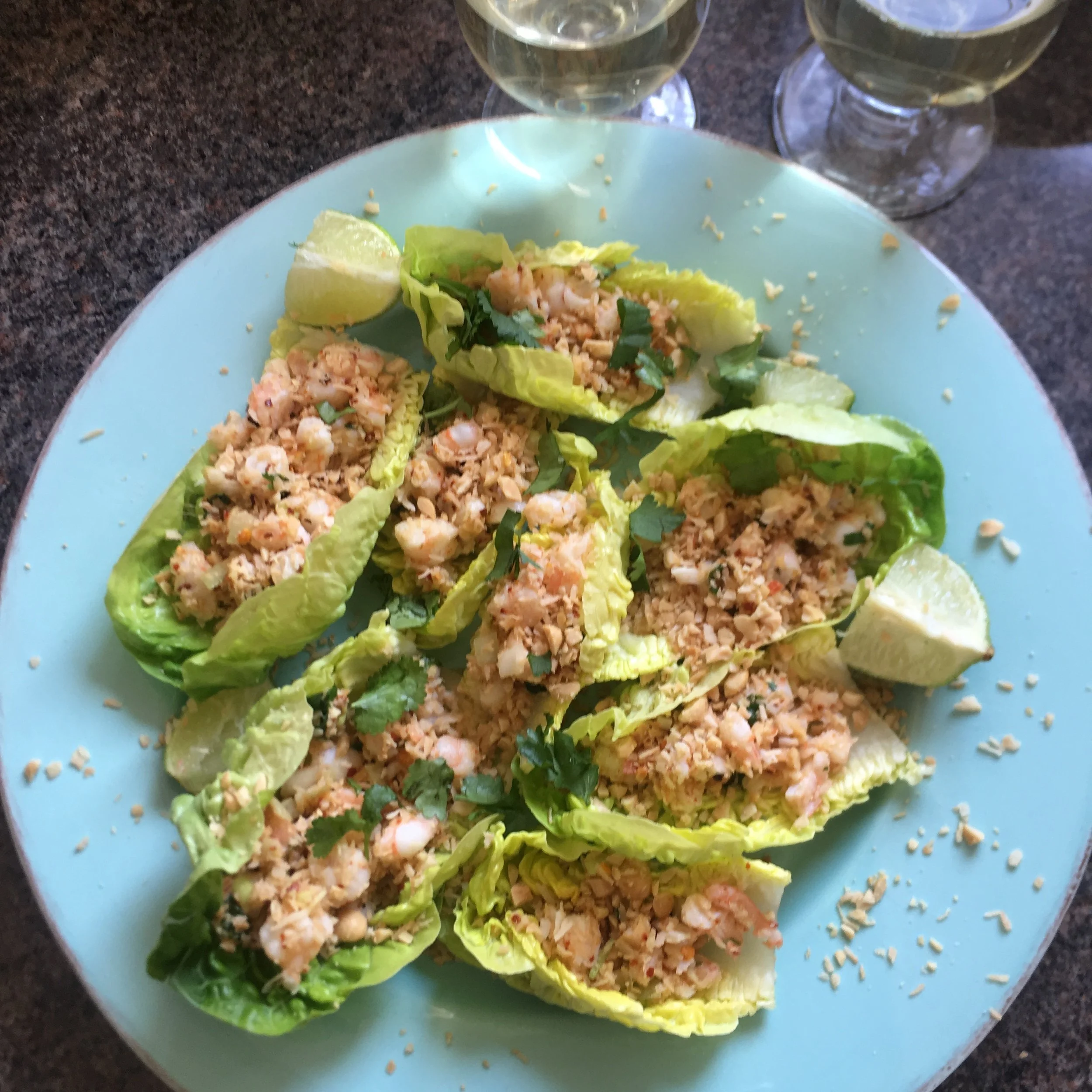 Thai coconut peanut prawn lettuce wraps