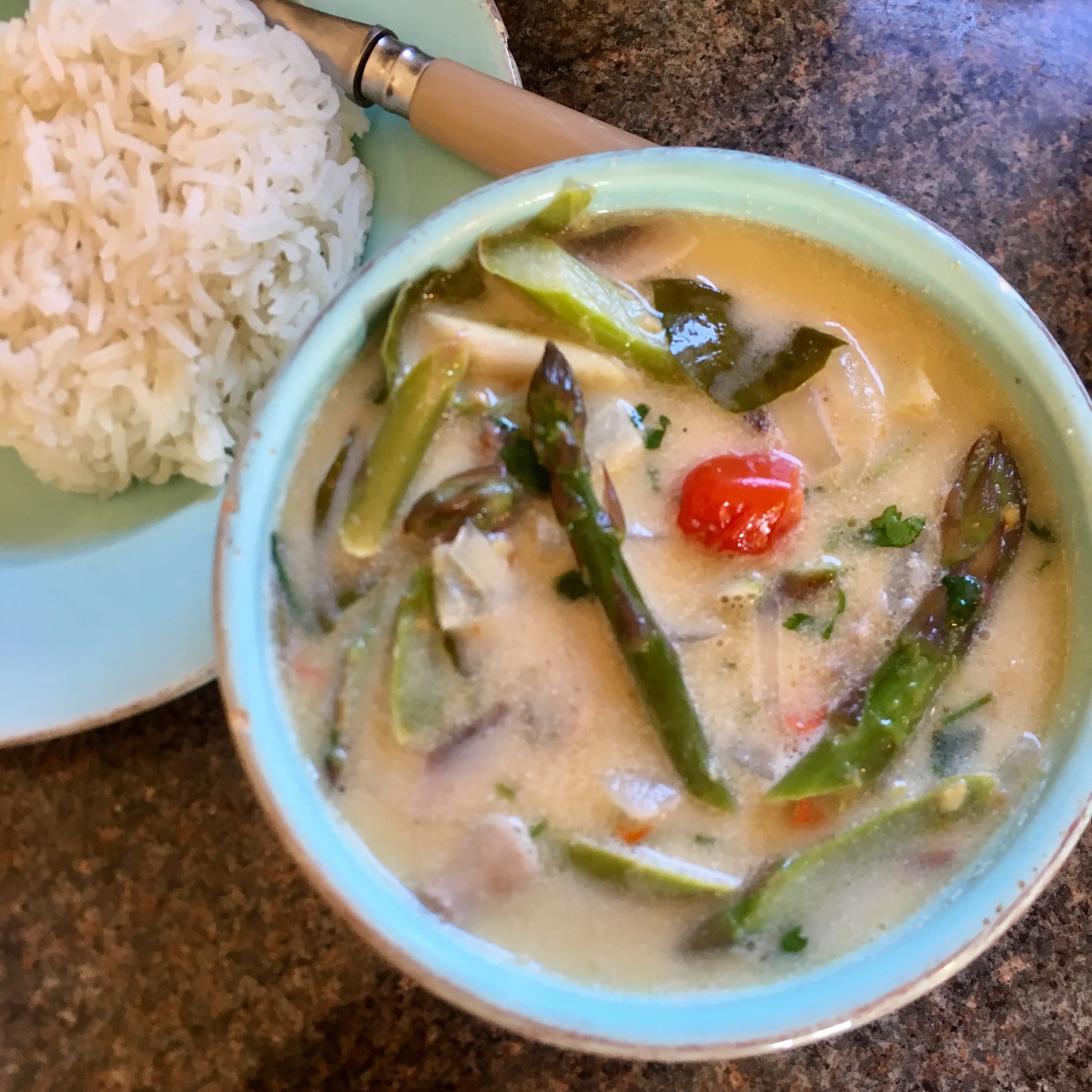 It’s asparagus season so get ready for a GLUT (ok maybe two or three) asparagus recipes from me… starting with this lovely coconut soup.