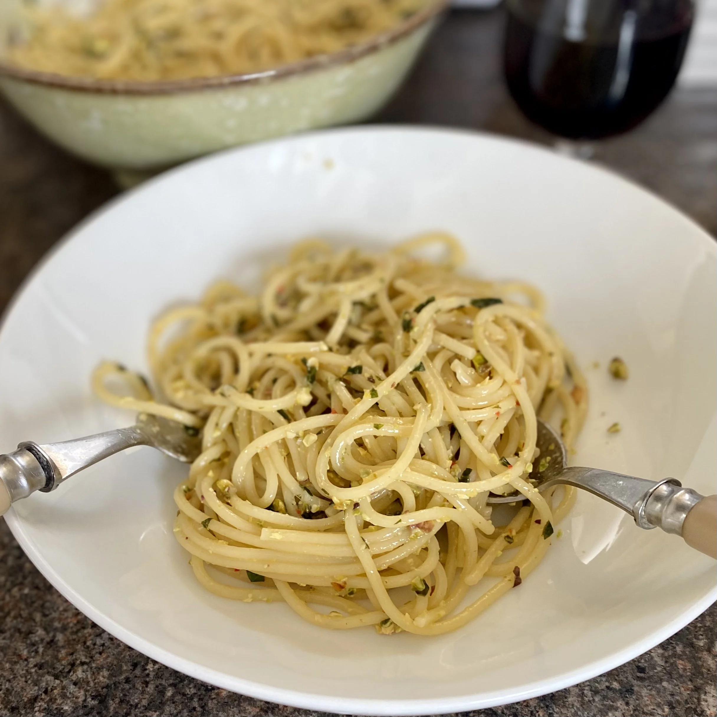 My friend Gemma made a huge bowl of this insanely delicious pasta with - as she called it - ‘posh pesto’ for our book club the other night.