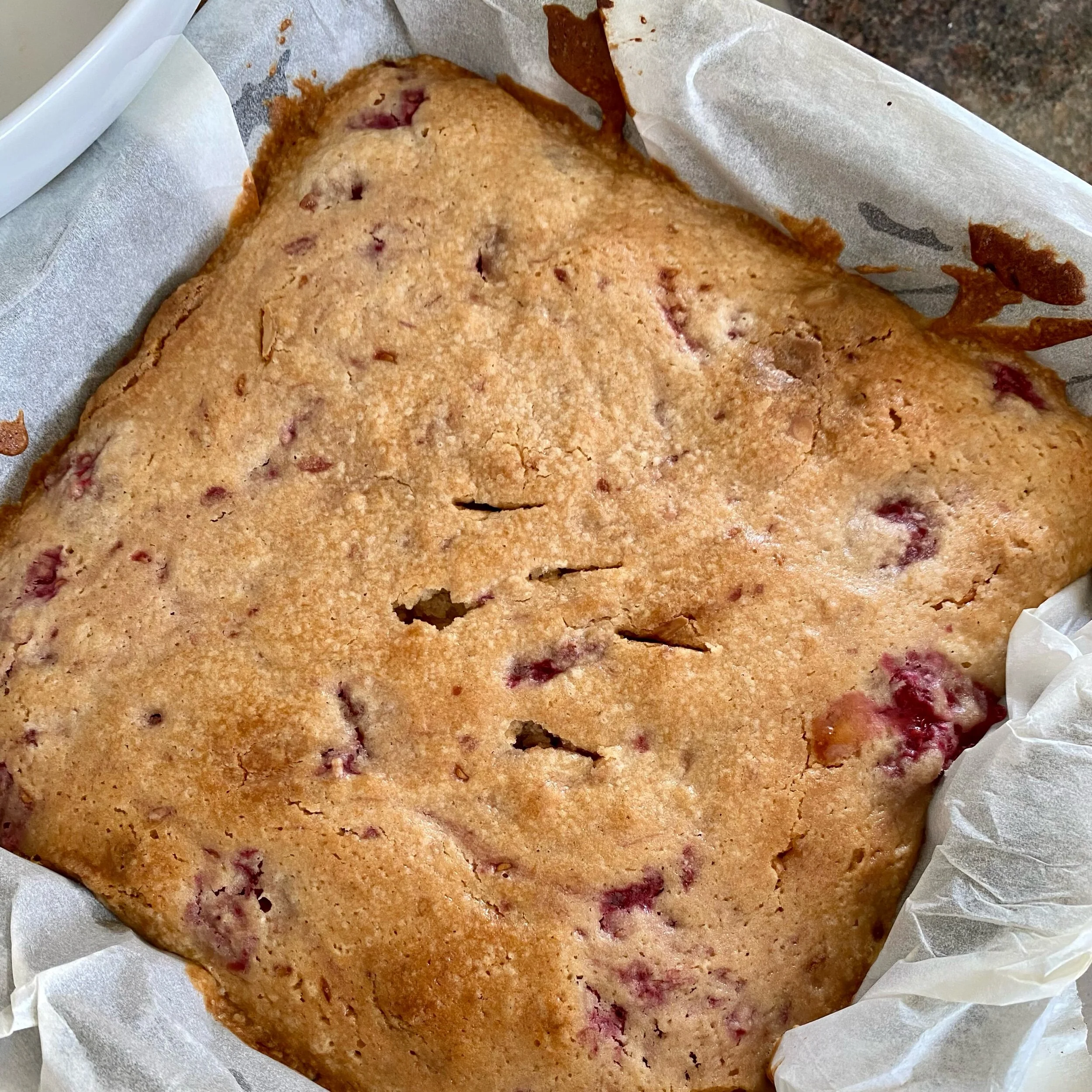 It’s not totally coming out clean but then I do also want my blondies to be soft and fudgey so I don’t want it completely cooked ‘til dry.
