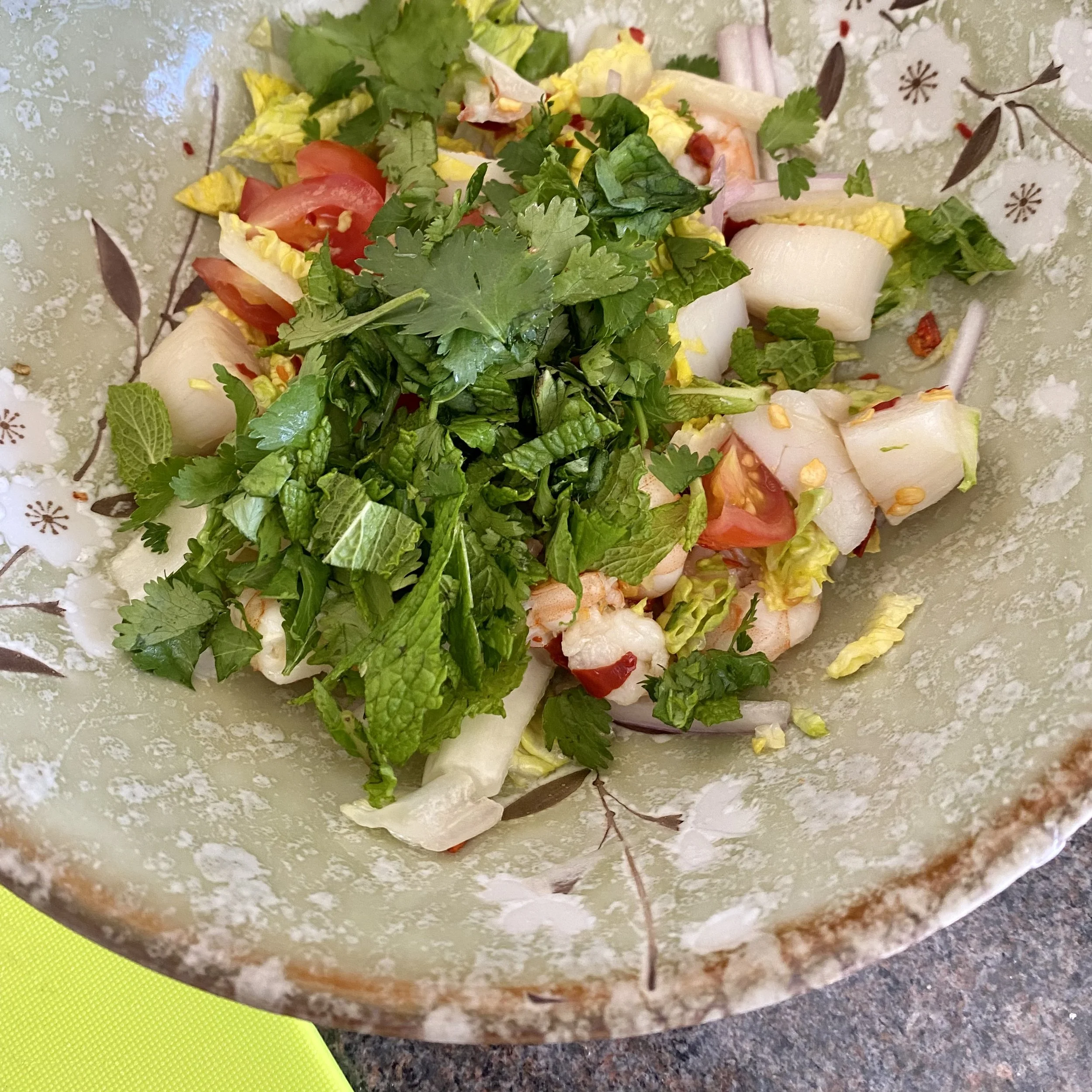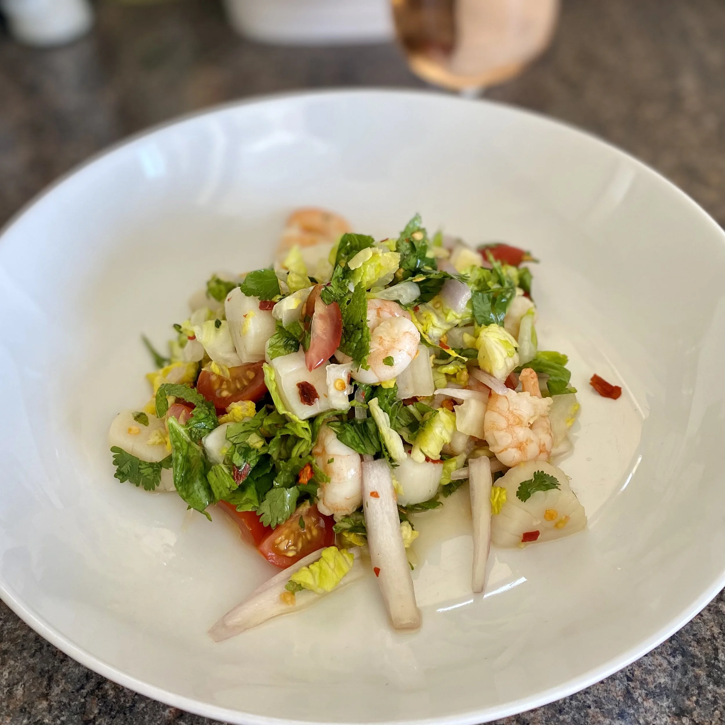 Friday was therefore another unexpectedly luxurious lunchtime treat of a Thai seafood salad, or yum talay.