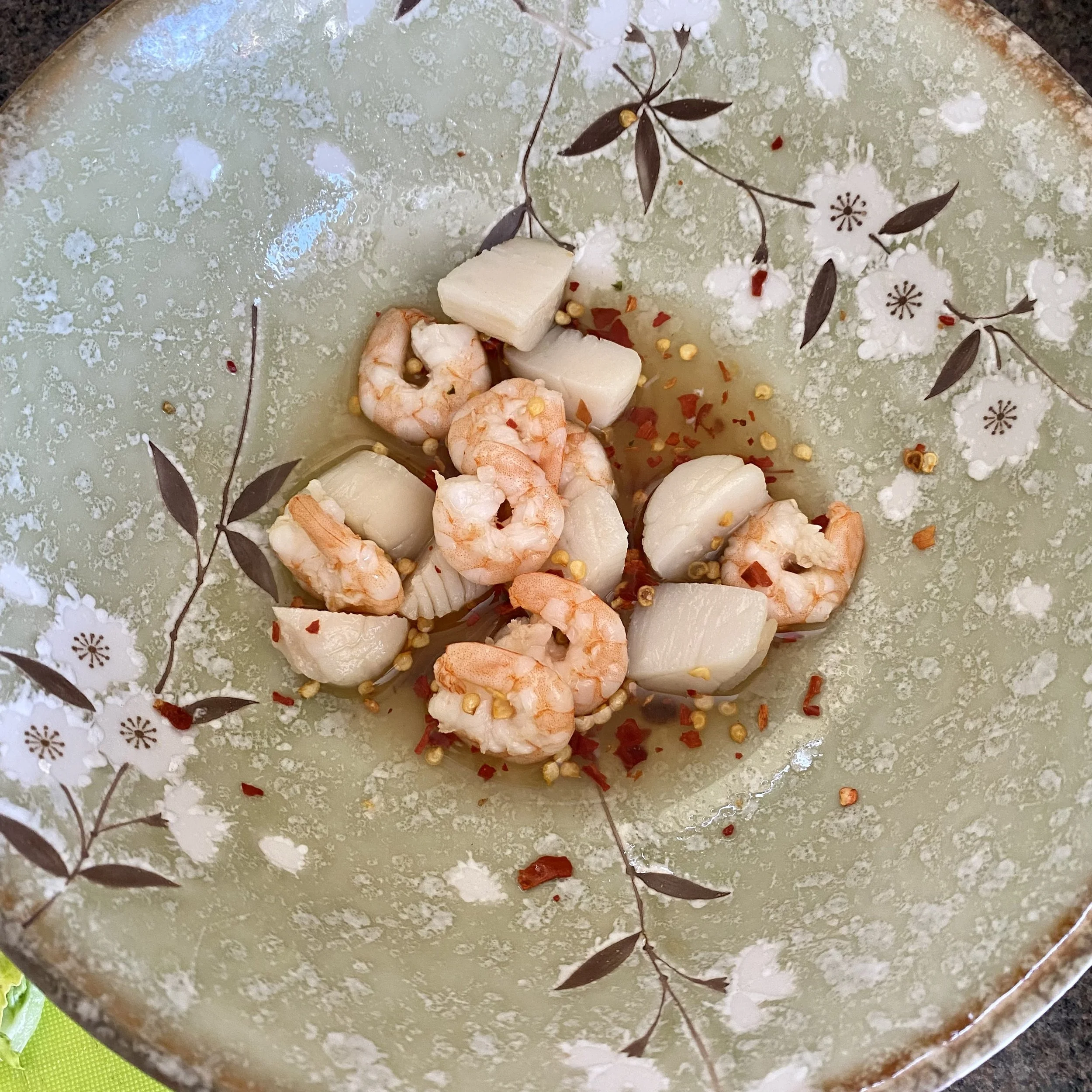 What happened was that the grocery shopping arrived and one thing I always have is frozen seafood in the freezer.