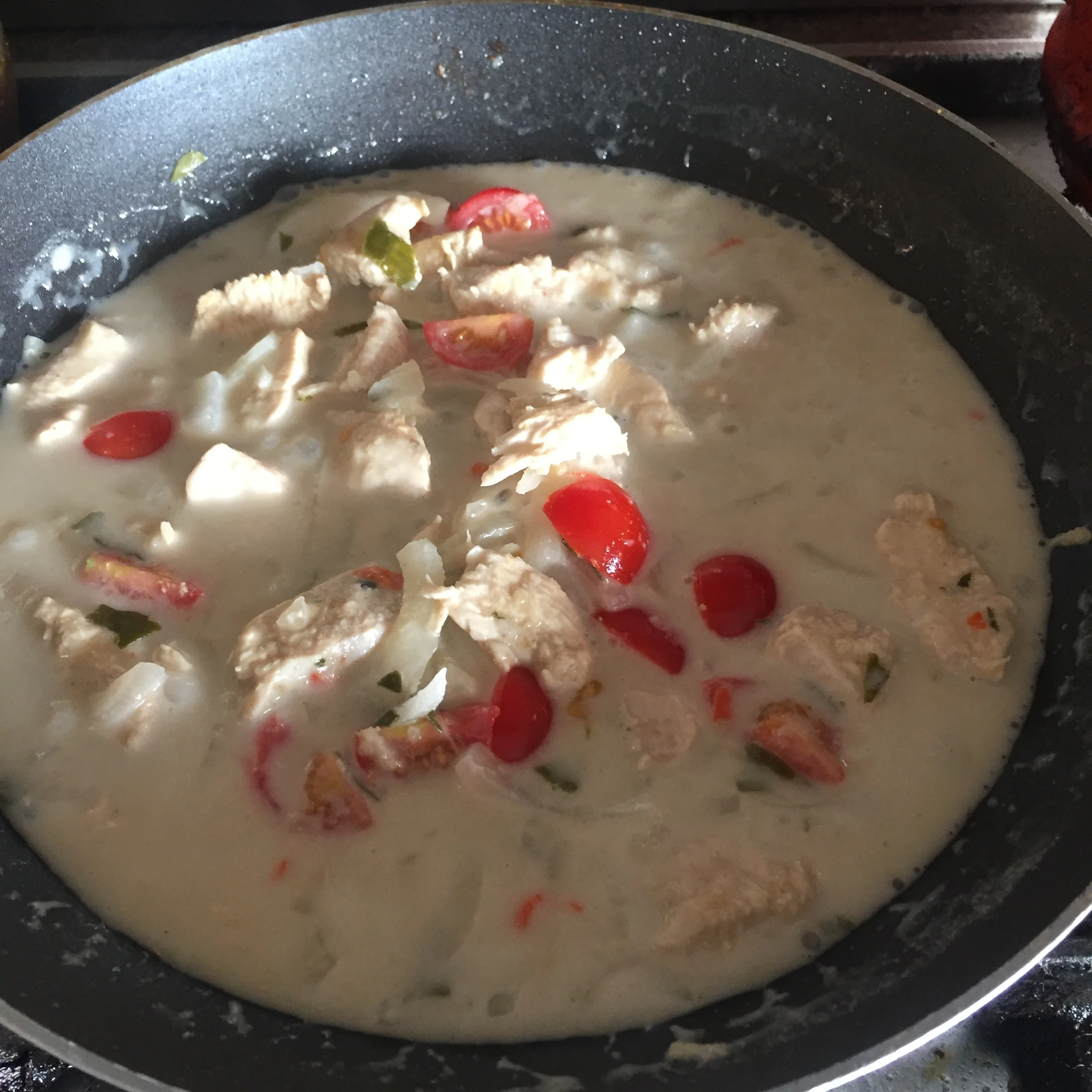 I added a handful of grated Parmesan to the top of the cauliflower for a last ten minutes cooking.