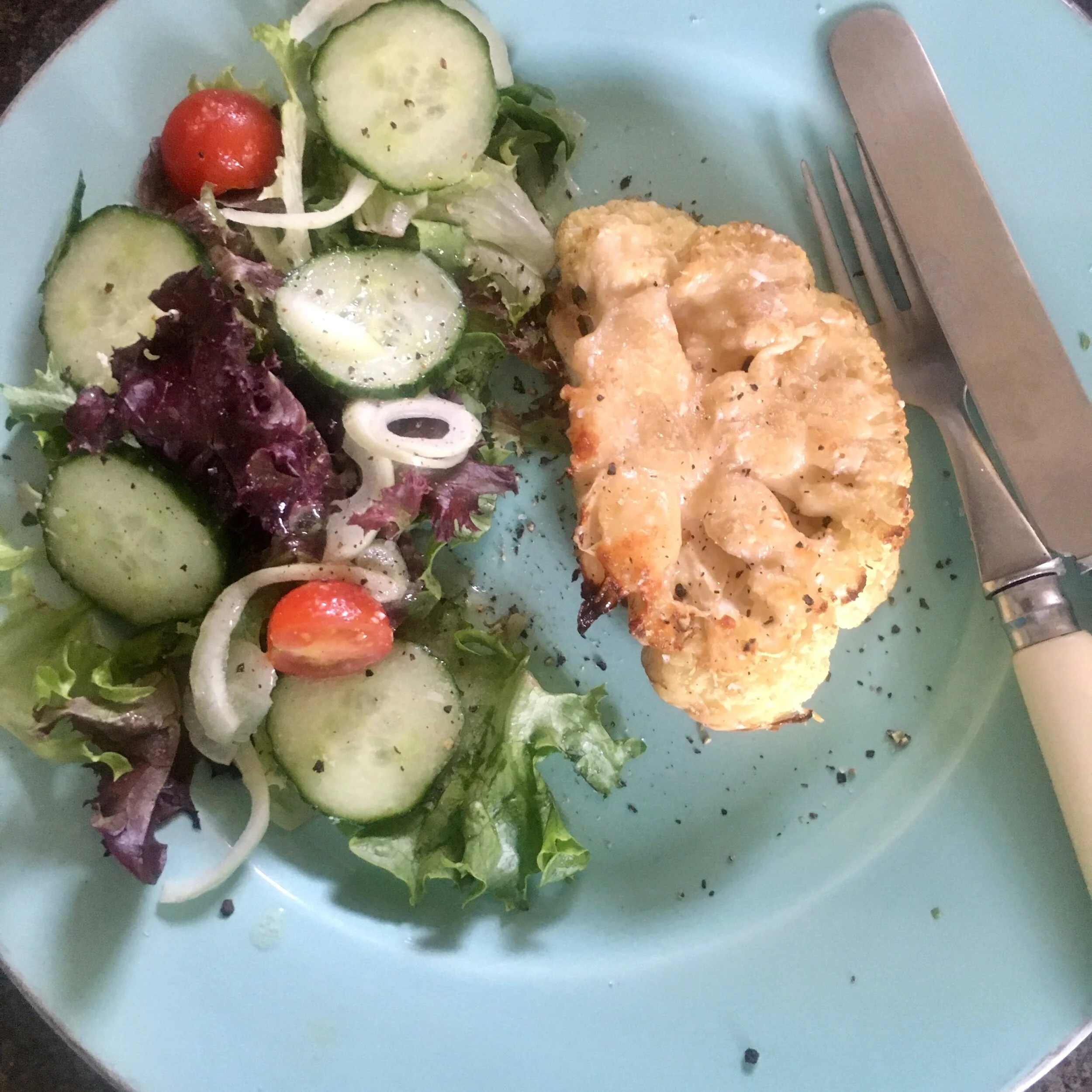 Have your cauliflower steak with salad or with stir-fried veg.