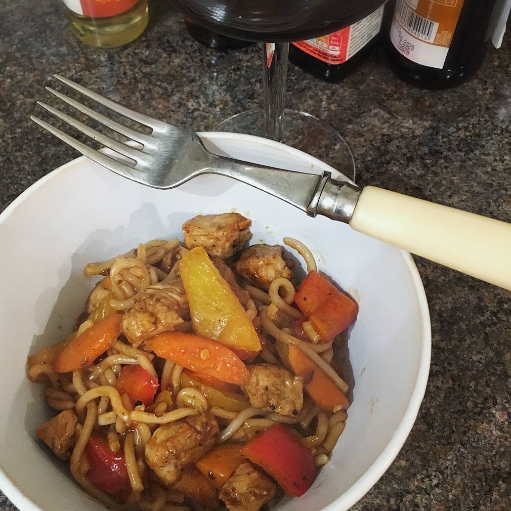 And looking at what was in the cupboard and fridge - and the fact I seem to have three packets of these noodles … well, it was going to be noodle based.