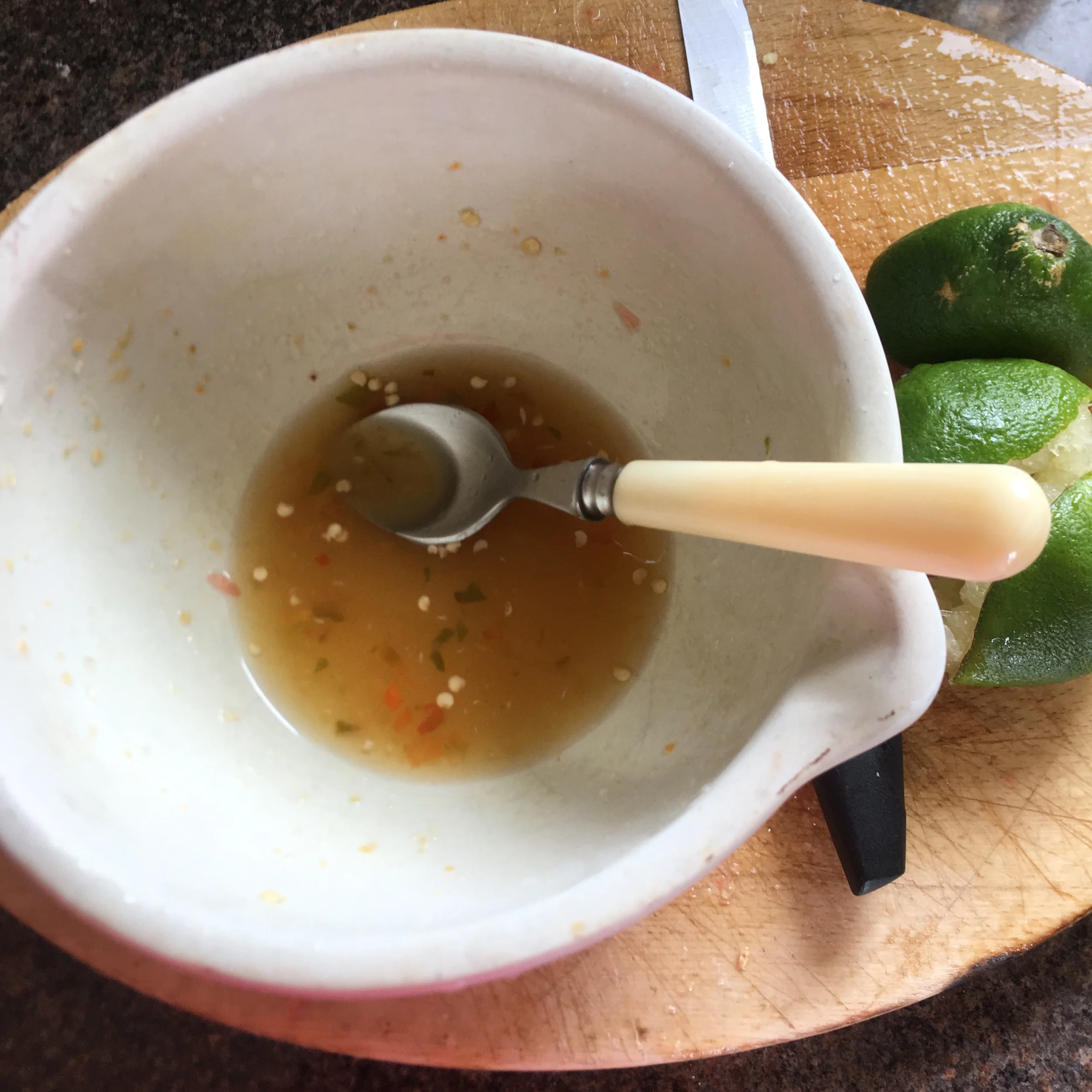 Add the soy and fish sauces, the sugar, spring onions, coriander and lime juice and cook for another minute or two, stirring all the time.