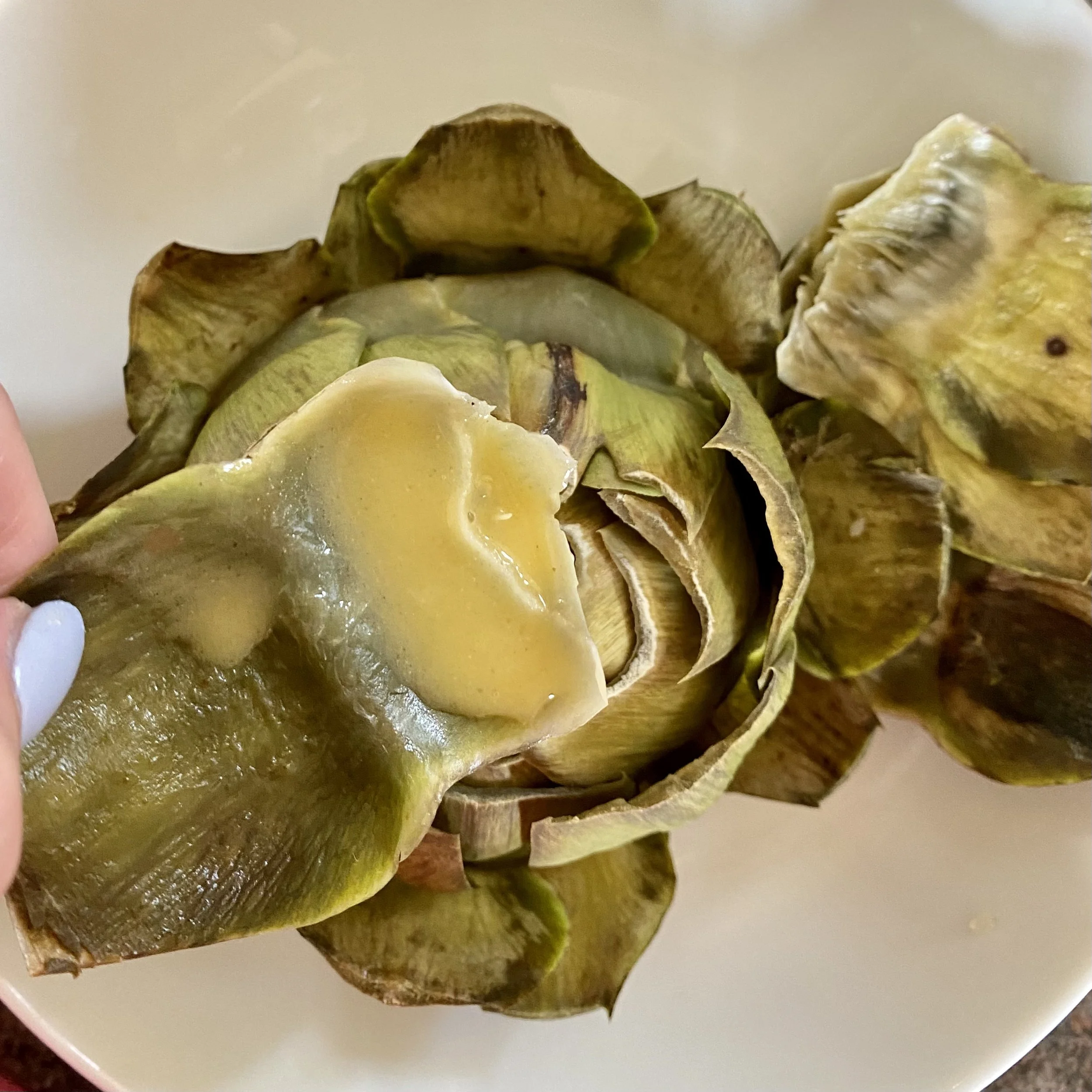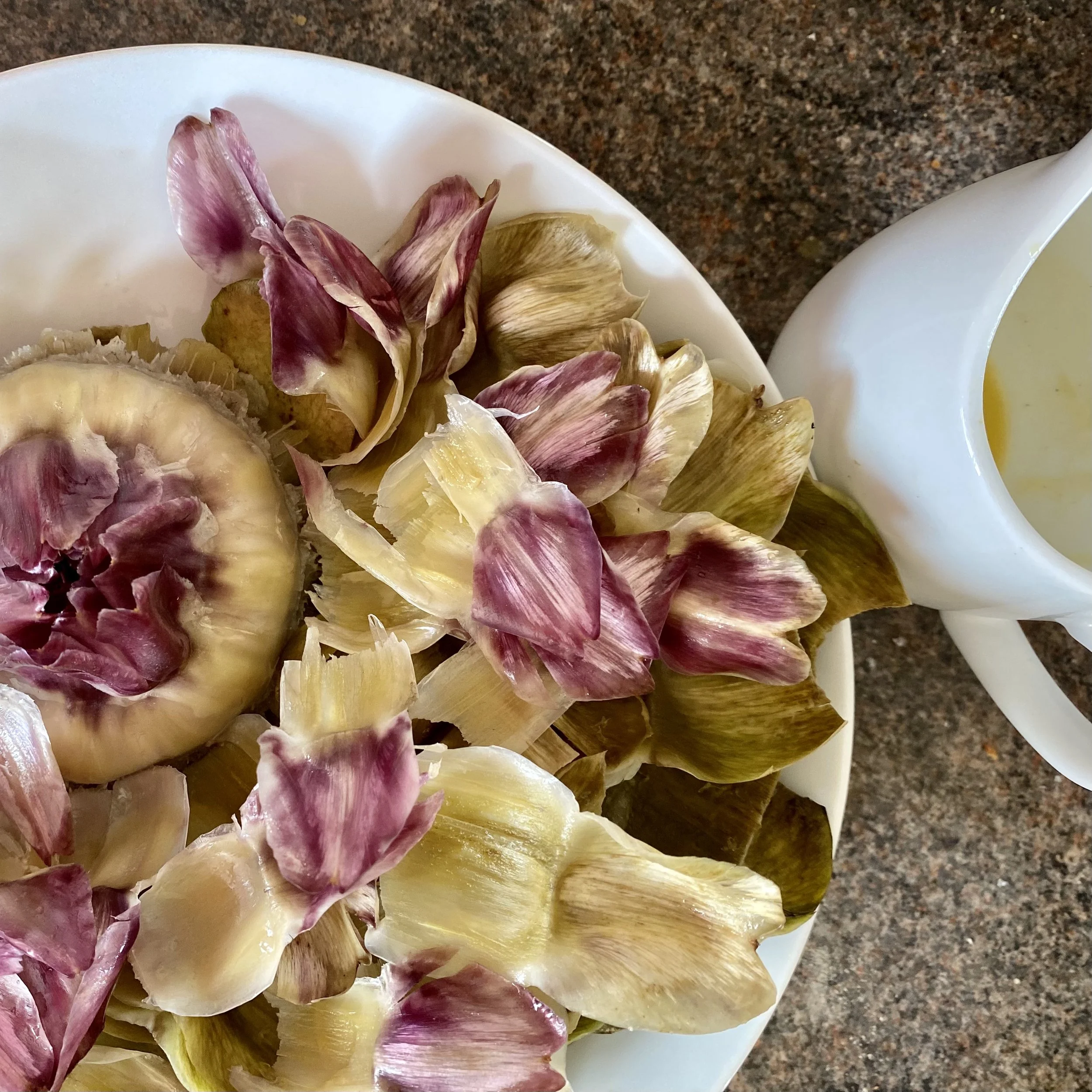 You can leave it to rest here while you make your sauce if you haven’t already done so. It doesn’t matter either way - globe artichokes are good hot or warm or even cold.