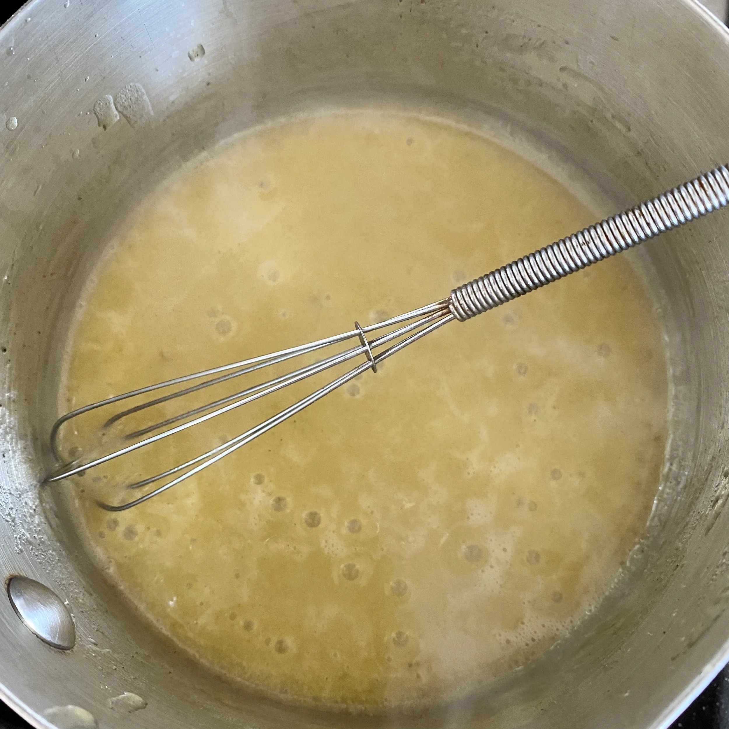 Once all the butter you choose to add is melted into the sauce, add a teaspoon or two (or three) of hot water, straight from the kettle and stir this in too.
